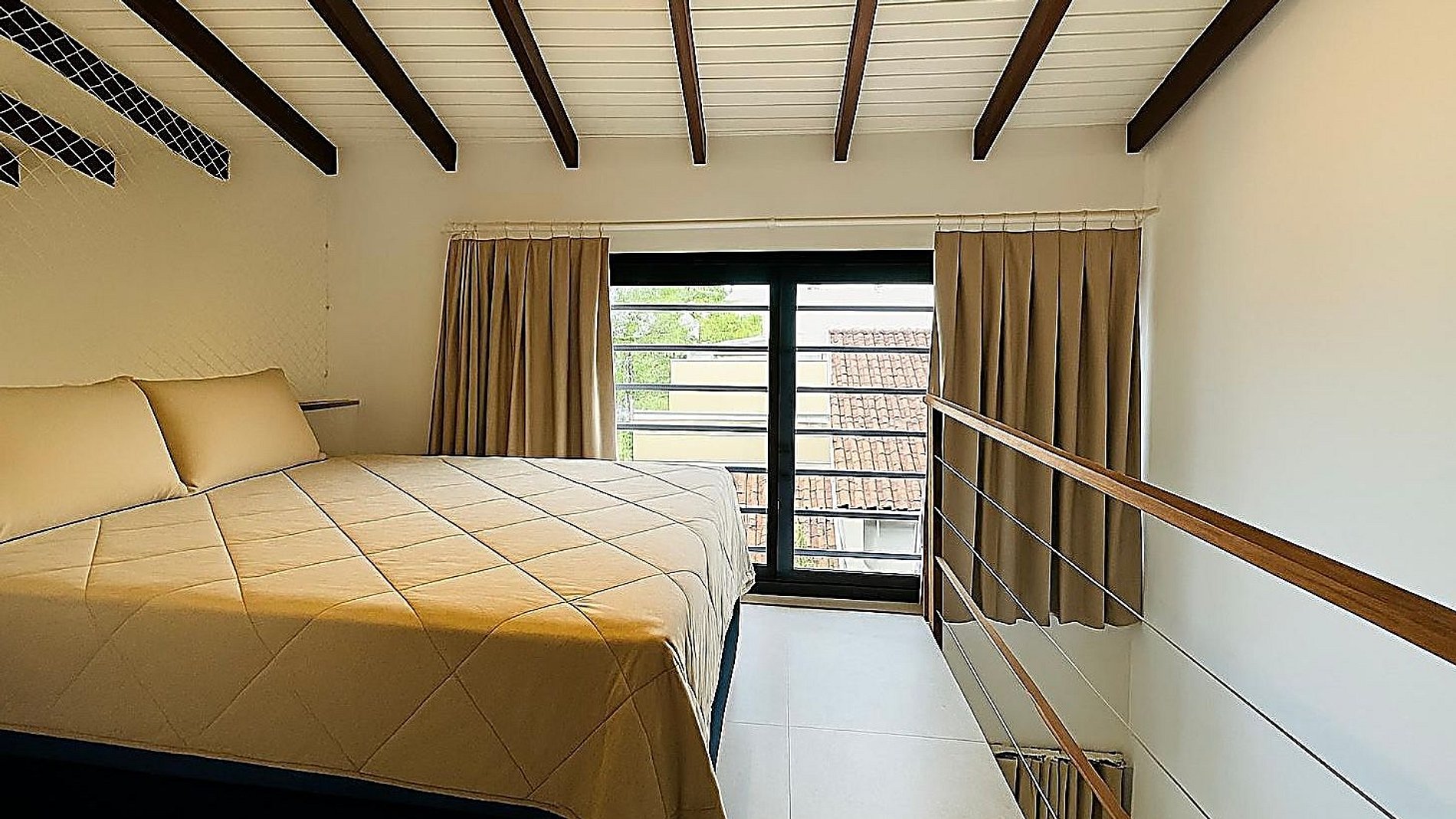 Loft duplex em Juquehy, na rua da praia, ao lado do shopping e da entrada 02. Acomoda até 4 pessoas com conforto. Possui 2 banheiros (um na suíte), cama queen, ar-condicionado, TV, cortinas blackout e pé direito alto. Duchas com pressurização para mais conforto. Varanda espaçosa com churrasqueira privativa. Parceria com serviço de praia para maior comodidade durante sua estadia. Ideal para casais ou famílias. Somos pet friendly.
