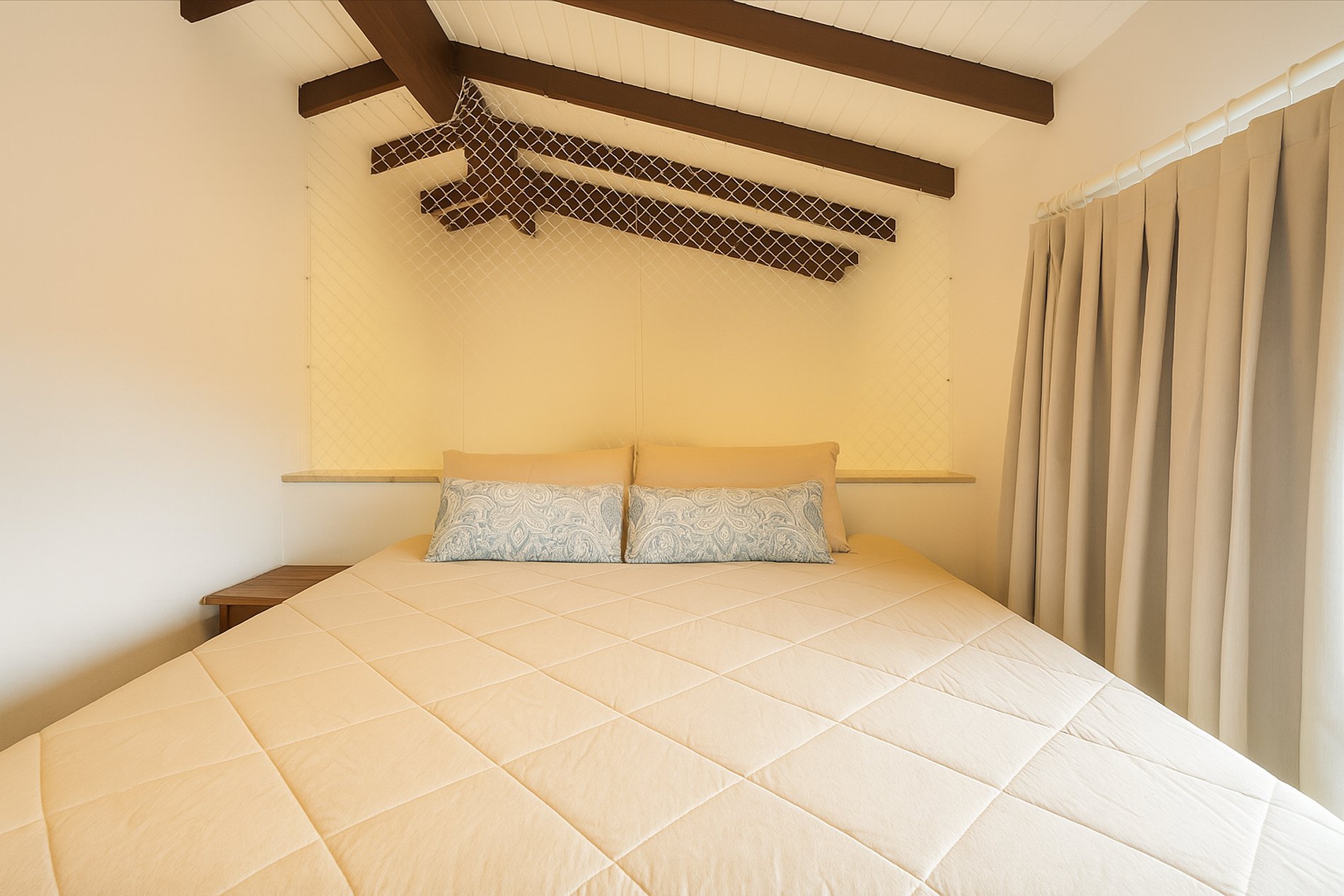 • 1 suíte climatizada com ar-condicionado split, equipada com cama queen size com travesseiros confortáveis e um colchão de solteiro.