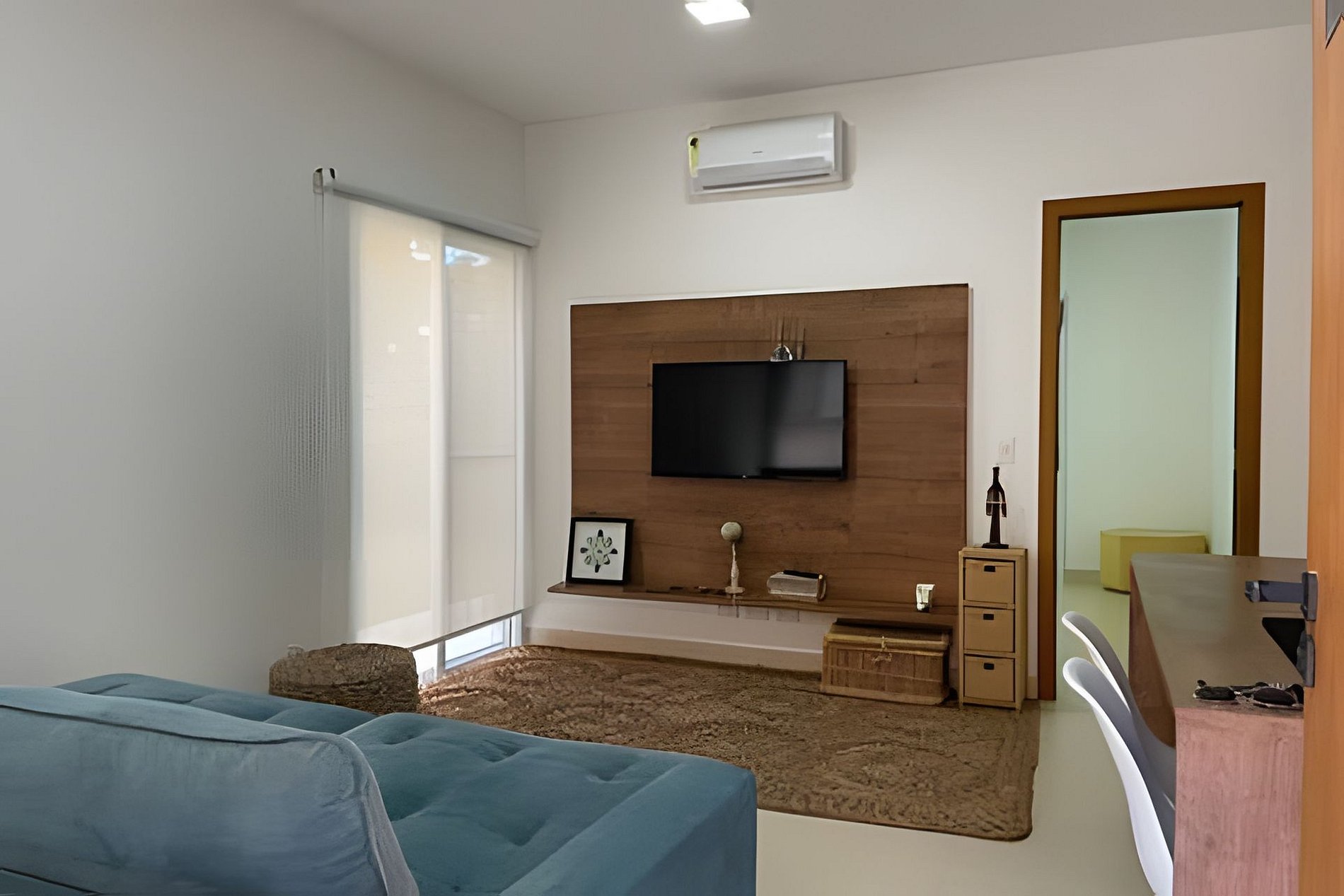 2 - A TV da sua acomodação é uma Smart TV, onde você terá acesso aos canais de streaming (Netflix, Youtube, Amazonprime e outros). Lembre-se de fazer o logout de suas contas. Além disso você terá acesso a TV a cabo SKY (canais abertos, a partir do 405);