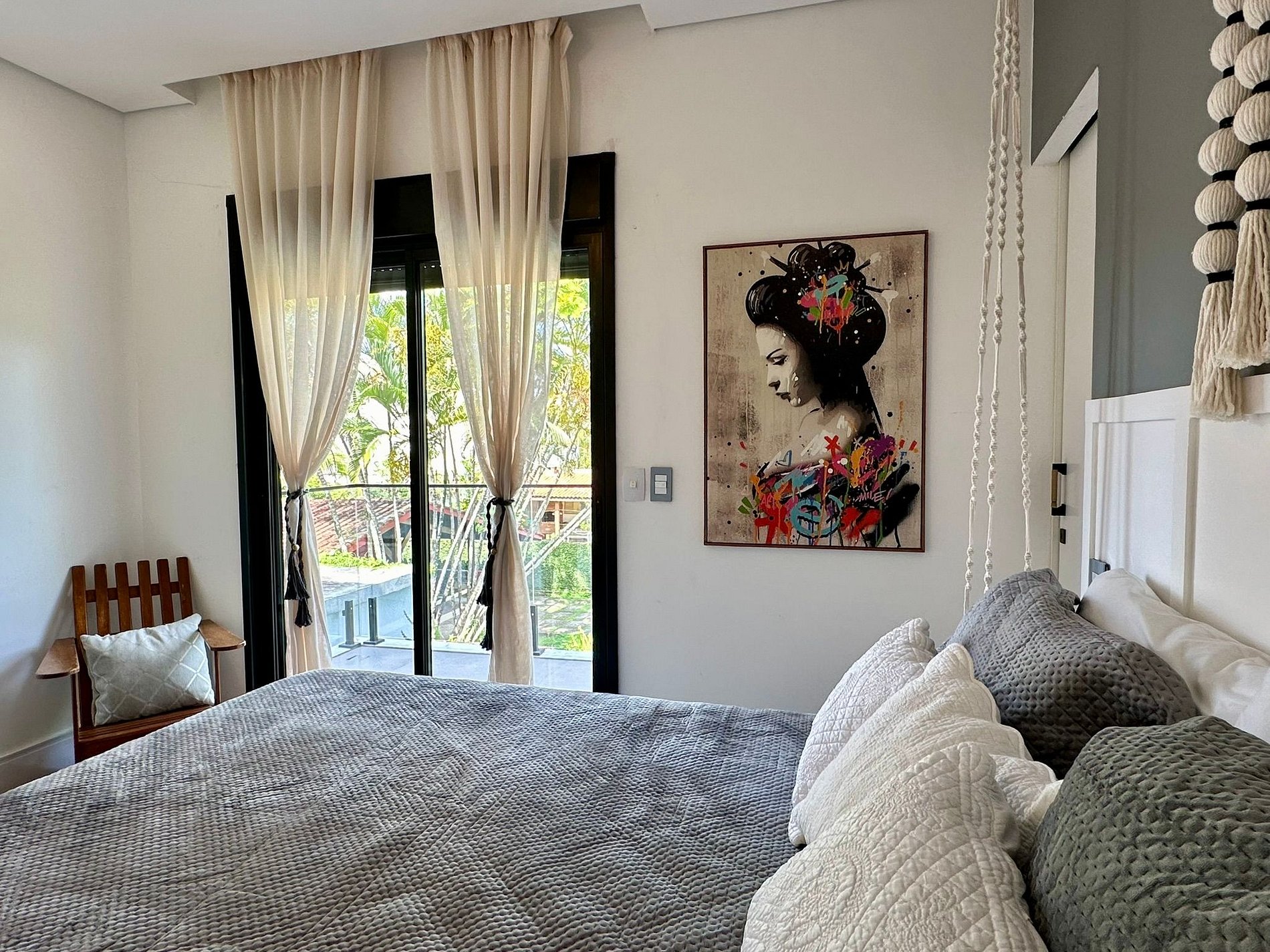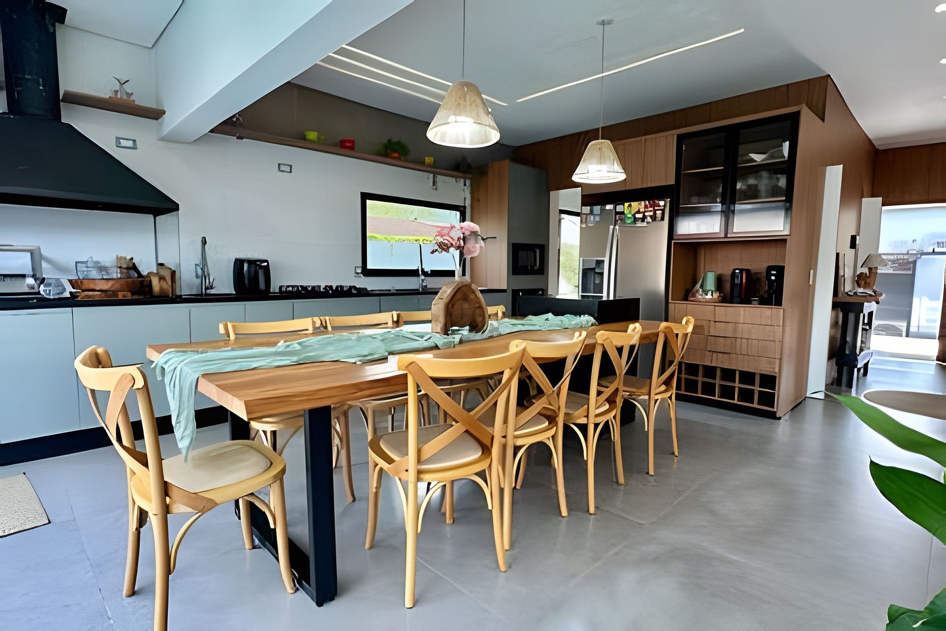 Casa composta por 6 camas, que acomodam 10 pessoas, dispostas em 4 dormitórios, sendo 4 suítes e 1 lavabo, sala integrada com cozinha completa e varanda gourmet equipada com churrasqueira. Ambientes climatizados com ar condicionado. A cozinha conta com geladeira, fogão, forno, micro-ondas, cafeteira, louças e talheres. A Casa Tsushida é muito completa para famílias e grupos maiores. Temos uma incrível sala de cinema que também se transforma em uma espaçosa suíte! O grande diferencial da Casa Tsushida é sua integração da área interna com externa, porém com um aconchego que poucas casas grandes oferecem.