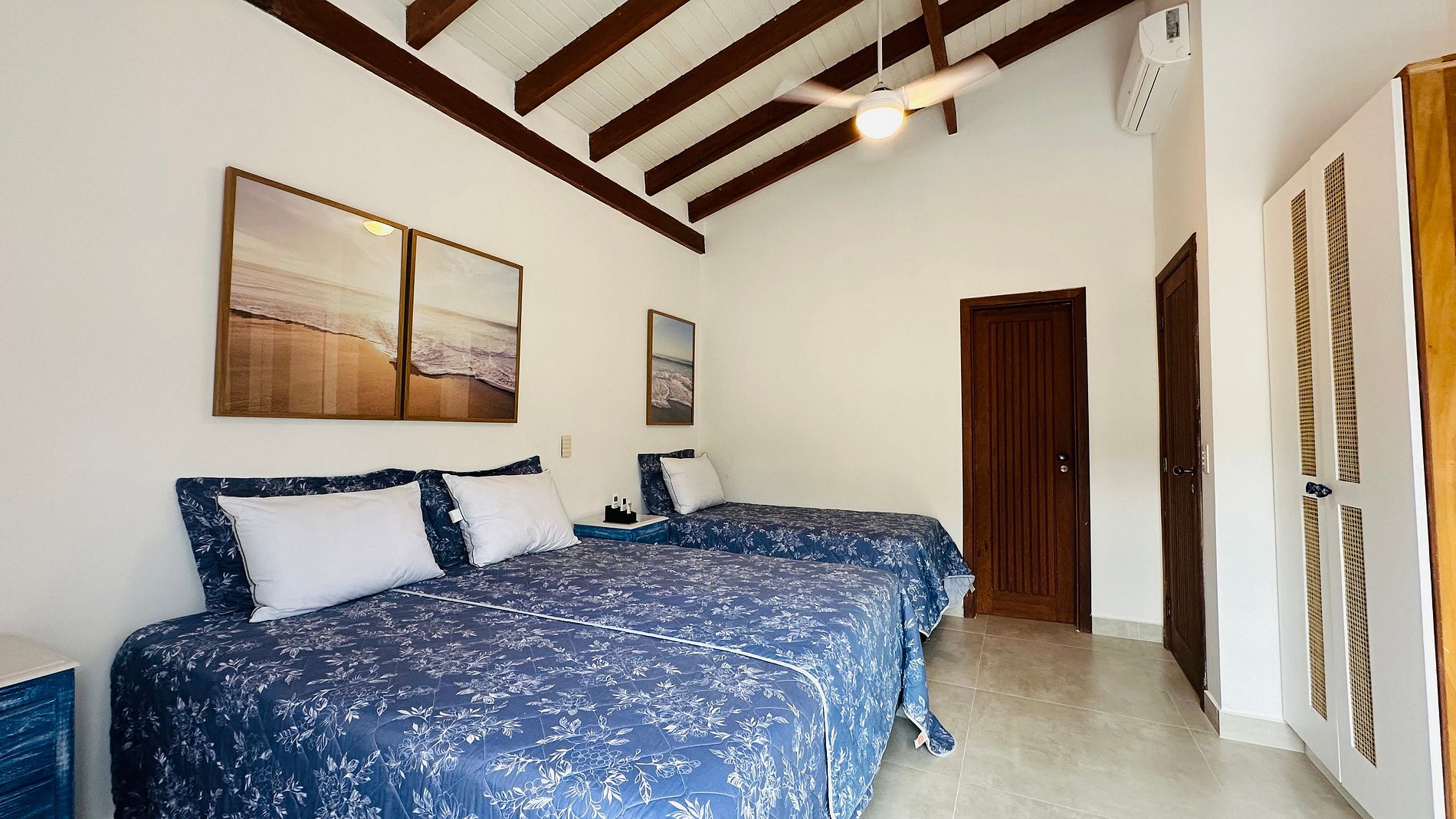 A apenas 350m do mar, com três suítes, piscina e uma churrasqueira gourmet. Cenário perfeito famílias que buscam um lugar acolhedor depois de um dia incrível na praia em Juquehy. A integração da casa, torna o espaço ideal para reunir famílias e amigos. A decoração combina o charme das ilhas gregas com um ar de Trancoso. Louçaria completa e roupas de cama e banho opcionais. Estacionamento para dois carros. Excelente casa para até 8 pessoas.