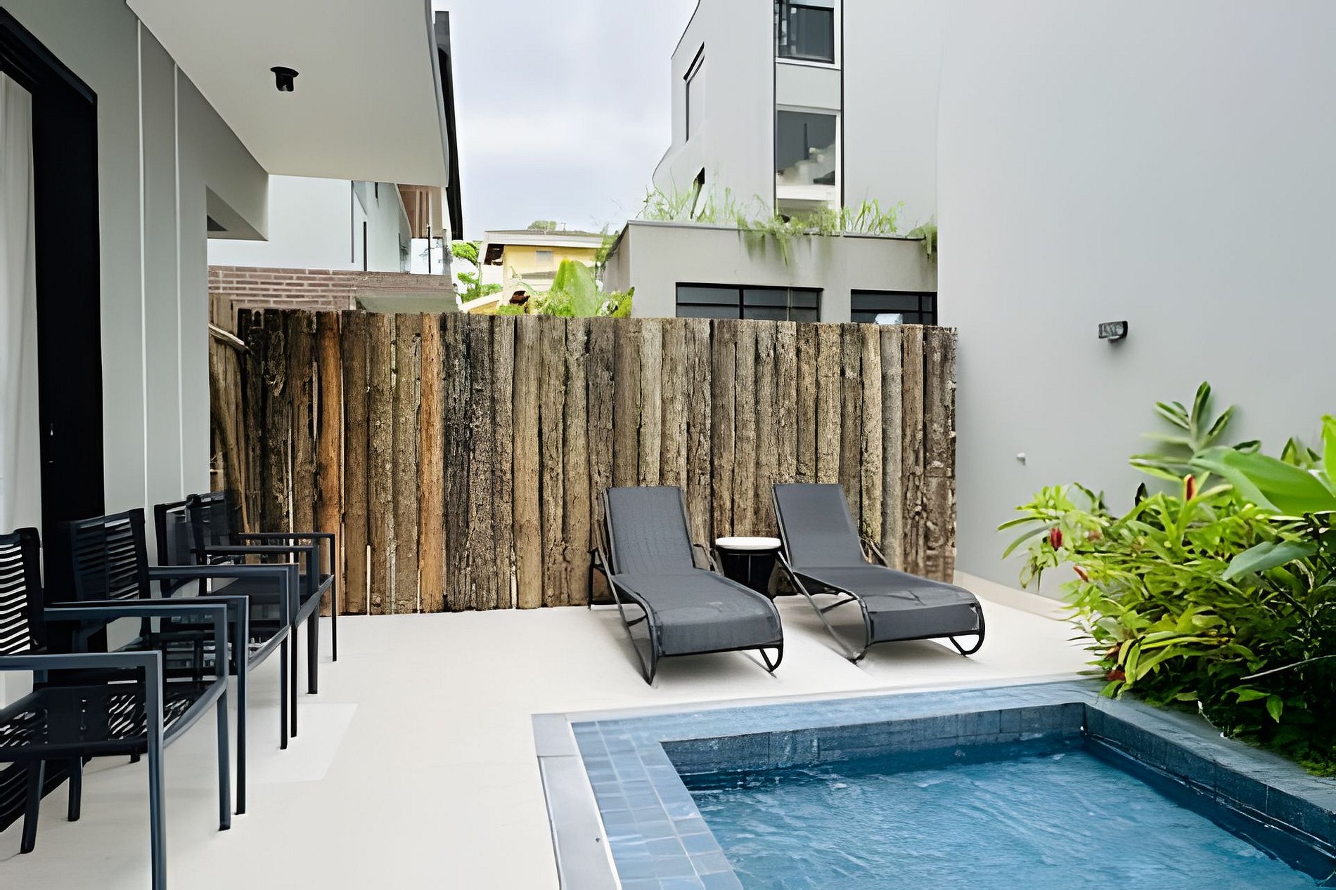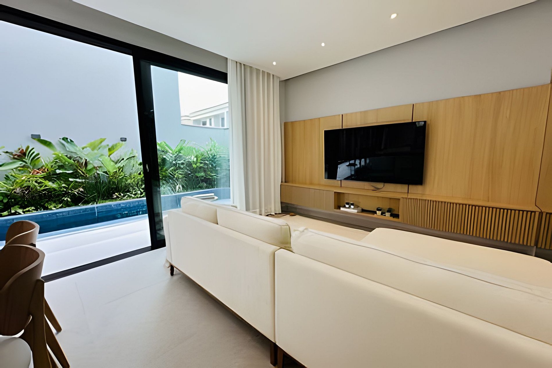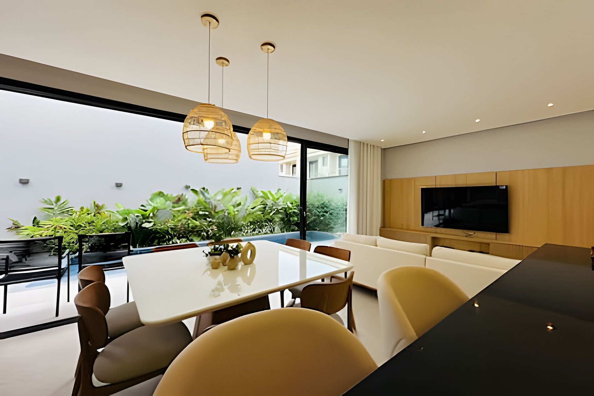 Uma acomodação do @juquehyflats. Recém construída, nunca alugada e preparada para receber famílias que priorizam conforto e integração. A piscina salinizada se integra com a sala e a churrasqueira. Dentro de um condomínio intimista com apenas 4 casas e todas com piscina privativa. Louçaria completa, roupas de cama e banho opcionais. Pertinho de tudo, do centro e da praia. Totalmente climatizada. A casa fica em condomínio com apenas 4 casas, todas com área de lazer privativas. Ao entrar na casa vc terá uma sala de estar integrada com área de jantar e cozinha completa. Na área externa e também integrada a casa tem a piscina, que é salinizada e a churrasqueira coberta por um toldo de vidro. É possível deixar a porta que divide a sala e a piscina totalmente aberta , o que proporciona muito mais espaço. No segundo piso temos 2 suítes com sala de banho e duchas bem fortes. As suítes tem ar condicionado e janelas blackout. E no terceiro andar a suíte master, também com sala de banho e varanda. Os nossos hóspedes tem acesso a toda área comum do condomínio e a casa toda.