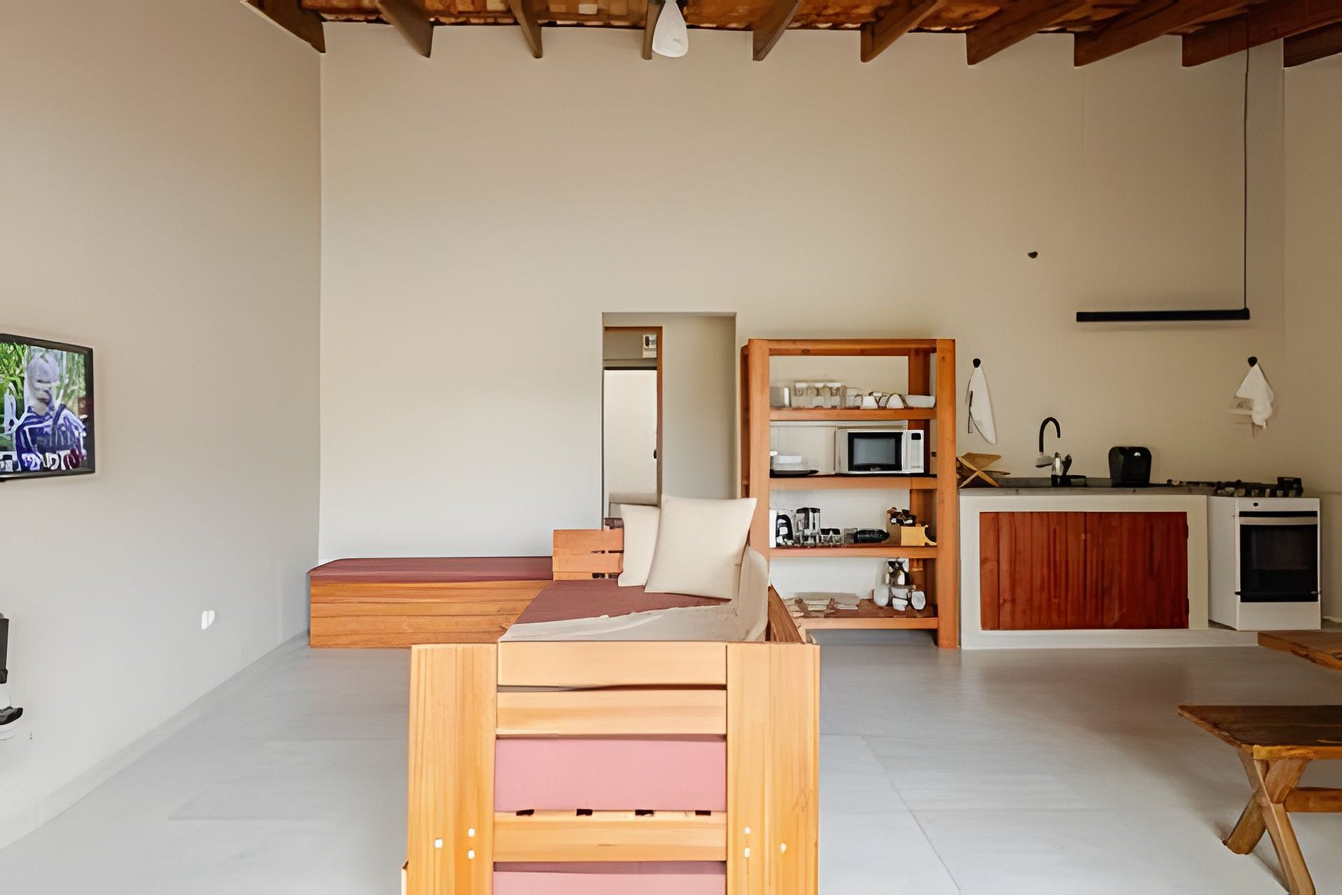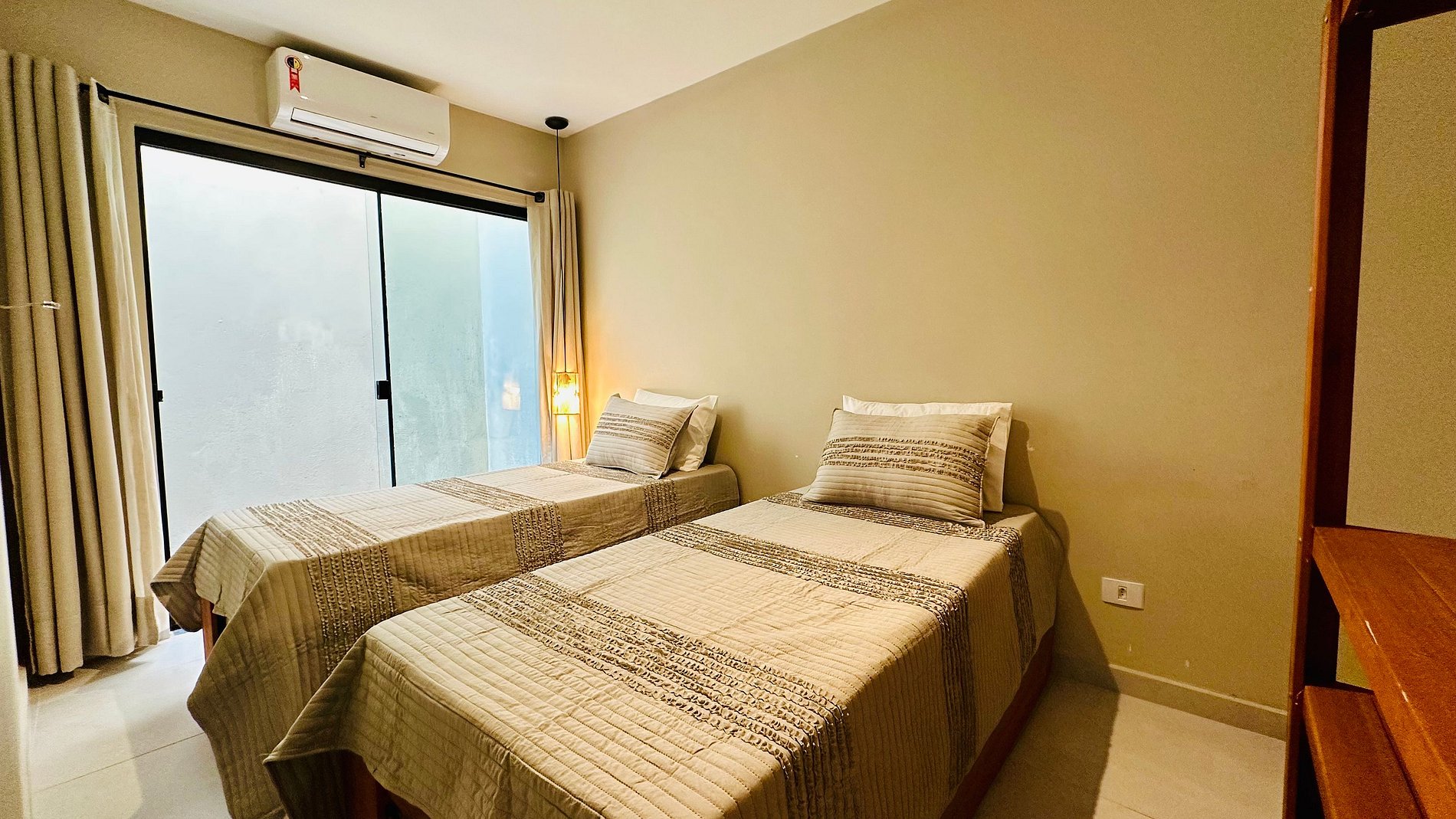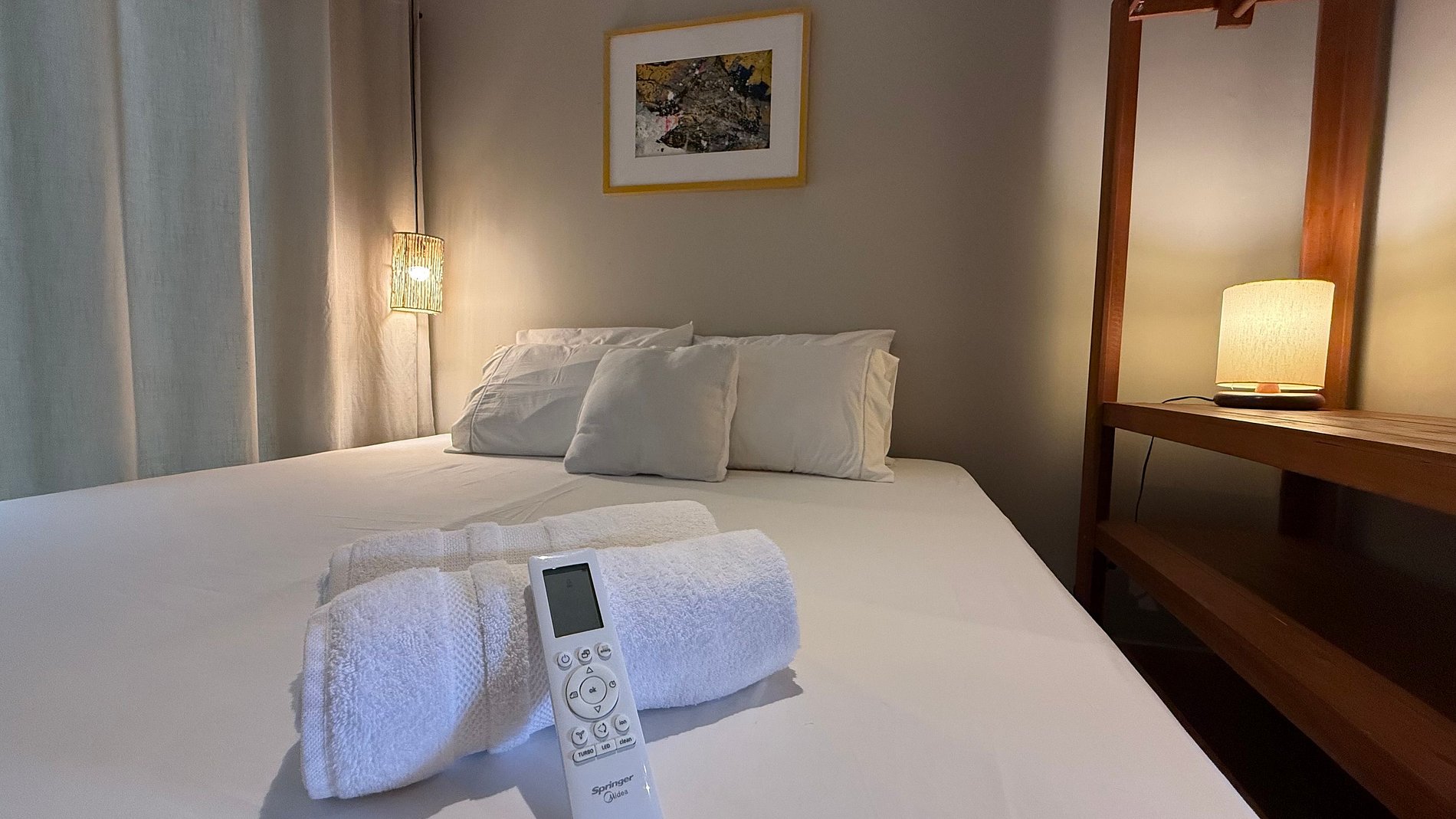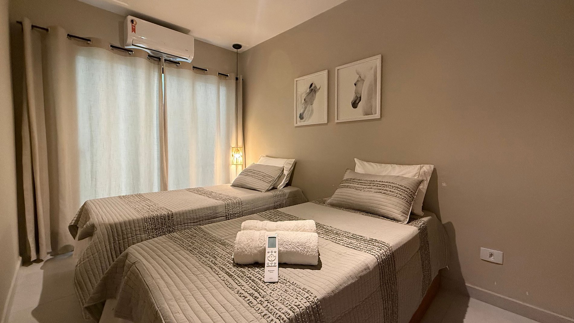 • 1 dormitório + 1 suite, climatizadas com ar-condicionado split, equipadas com camas confortáveis.
