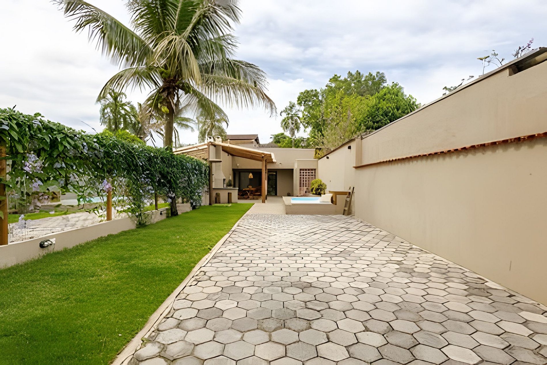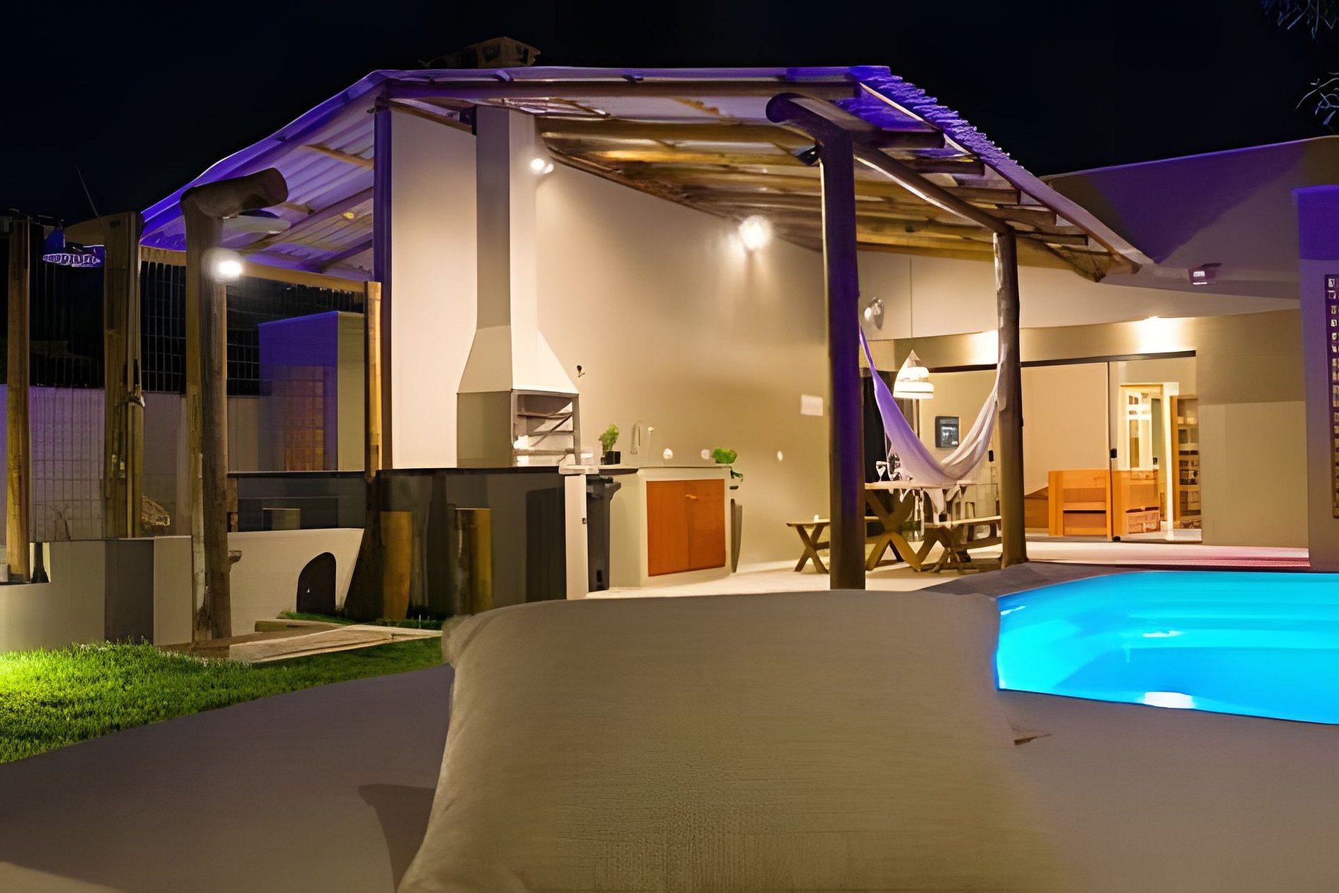 A casa conta com uma ampla área de lazer, muito verde ao redor e total privacidade. São duas vagas de garagem, um dormitório e uma suíte, ambos com camas de madeira maciça, colchões de qualidade, ar-condicionado e armários para acomodar os itens pessoais. Dispõe ainda de banheiro social, banheiro externo na área da piscina, além de ambientes bem distribuídos para momentos de descanso e lazer.