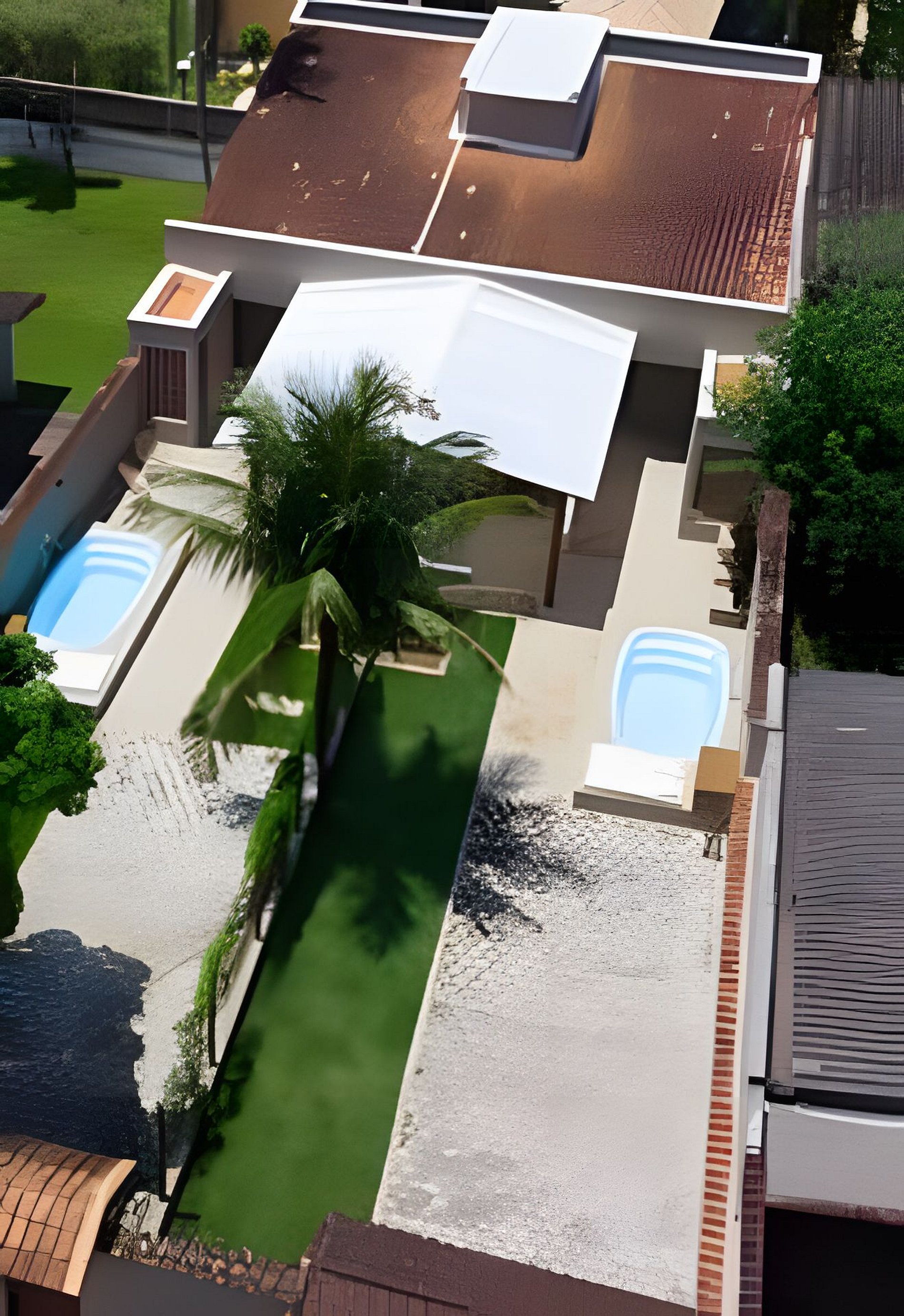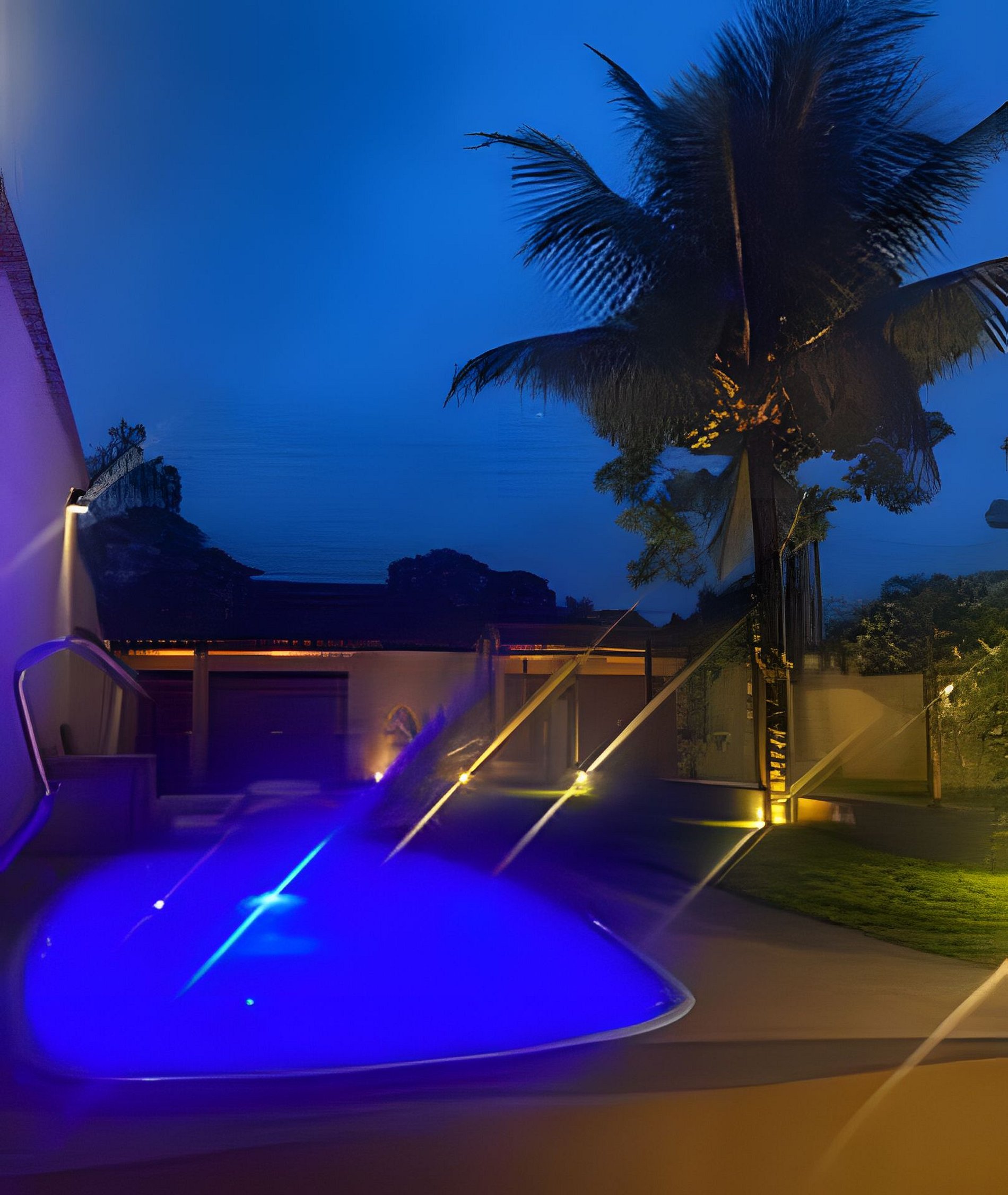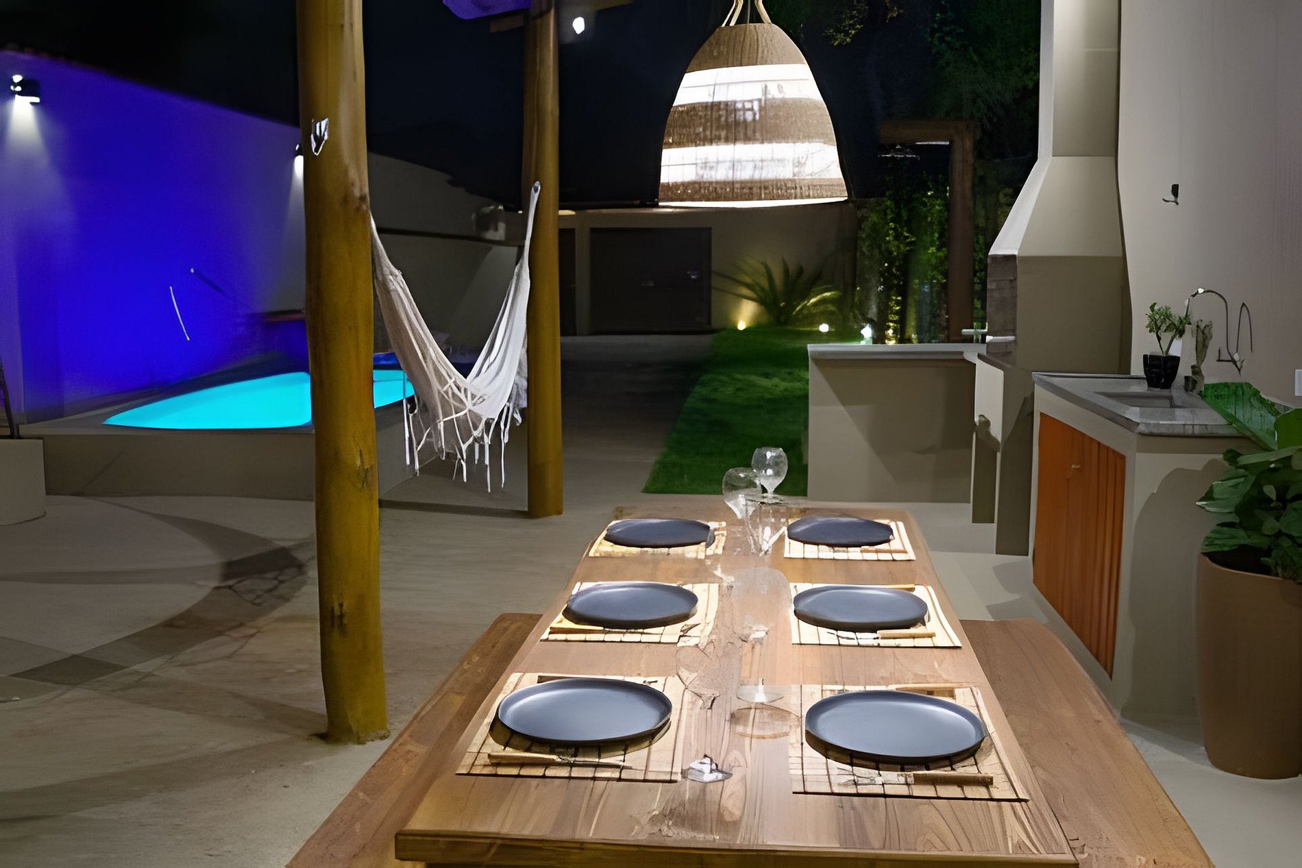 • Iluminação decorativa noturna em toda a área da piscina e churrasqueira.• Ducha externa