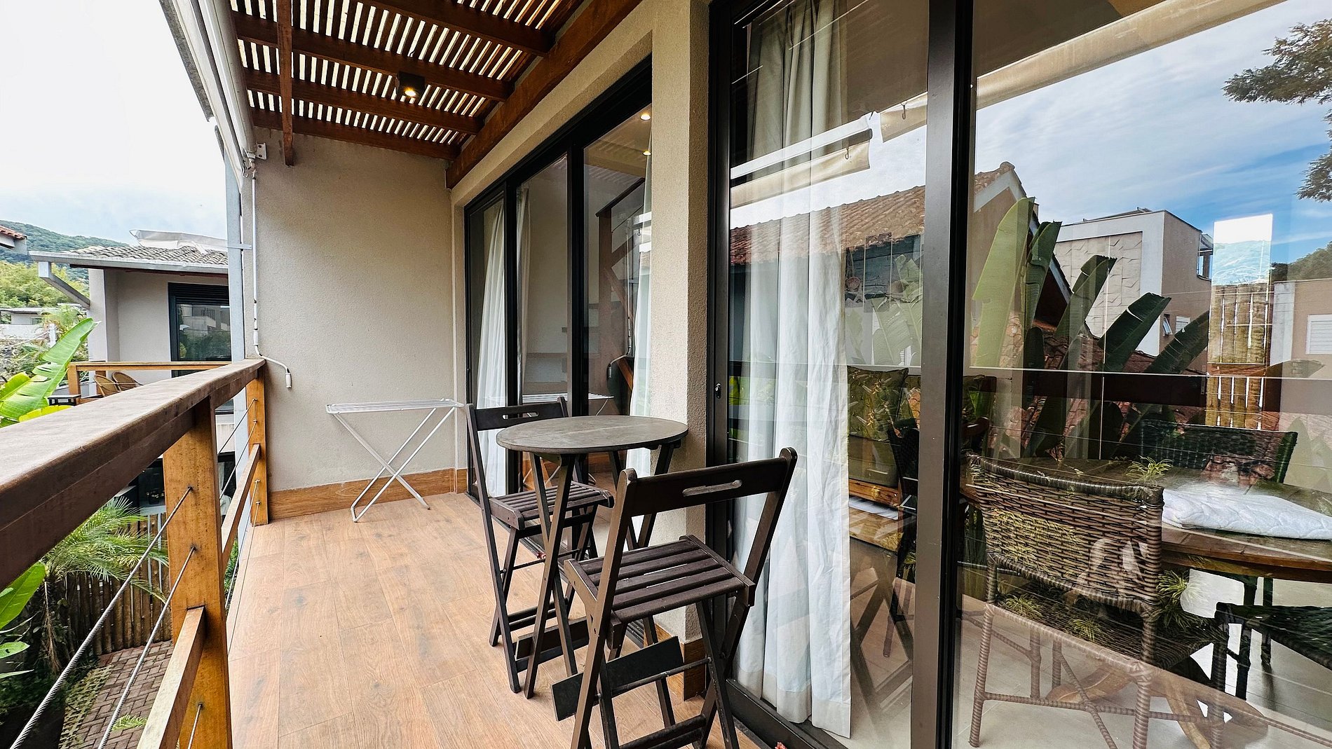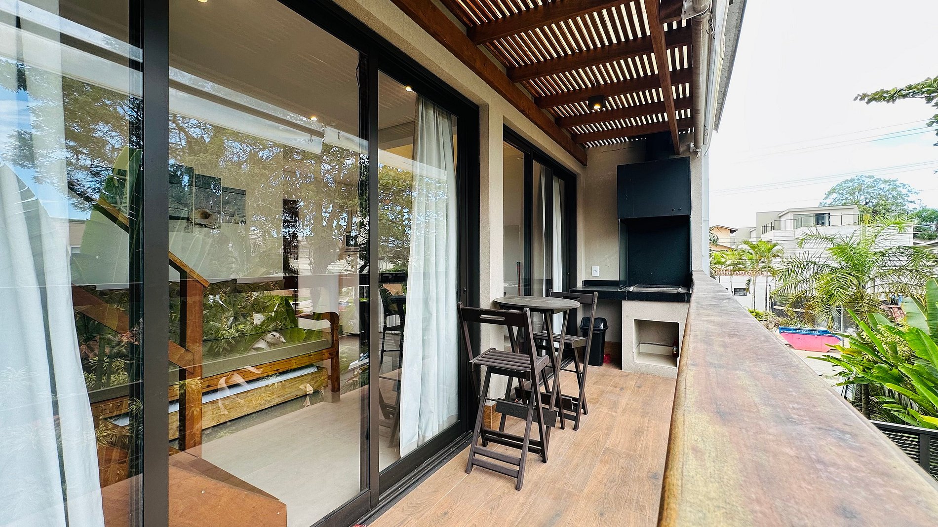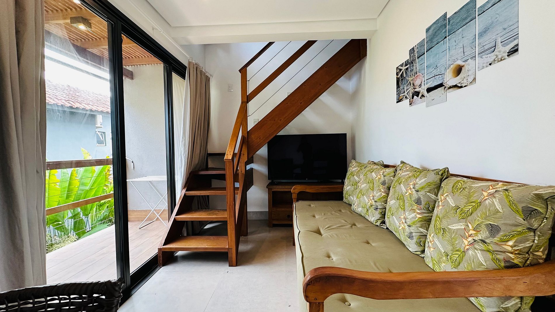 Loft duplex em Juquehy, na rua da praia, ao lado do shopping e da entrada 02. Acomoda até 4 pessoas com conforto. Possui 2 banheiros (um na suíte), cama queen, ar-condicionado, TV, cortinas blackout e pé direito alto. Duchas com pressurização para mais conforto. Varanda espaçosa com churrasqueira privativa. Parceria com serviço de praia para maior comodidade durante sua estadia. Ideal para casais ou famílias. Somos pet friendly.