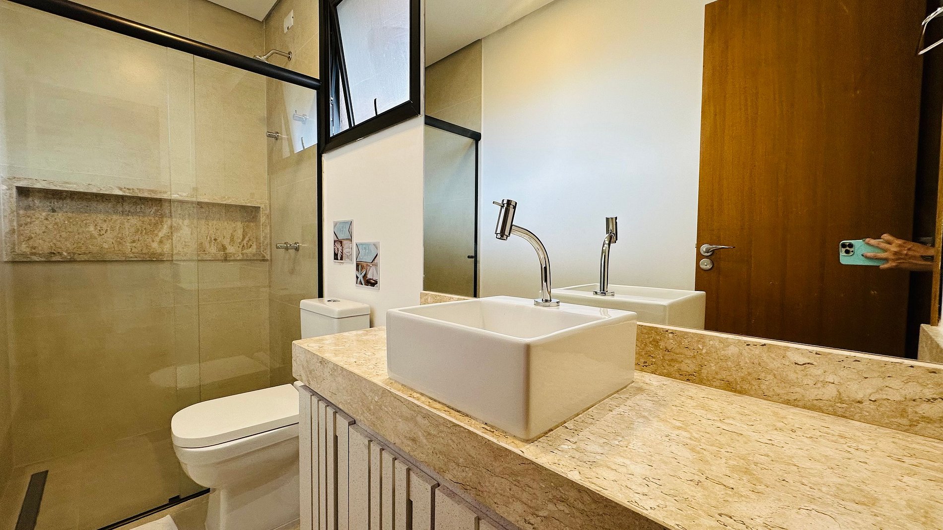 • Os banheiros são espaçosos, com box de vidro, duchas pressurizadas, toalhas de banho disponíveis, exceto toalhas de praia.