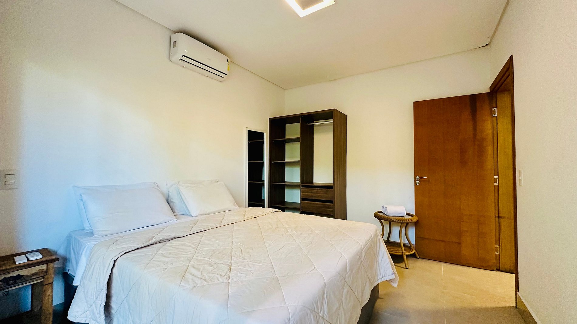 • 1 quarto com porta automatizada, que da acesso a varanda da acomodação, ar-condicionado split, com cama queen size com travesseiros confortáveis e um colchão de solteiro.
